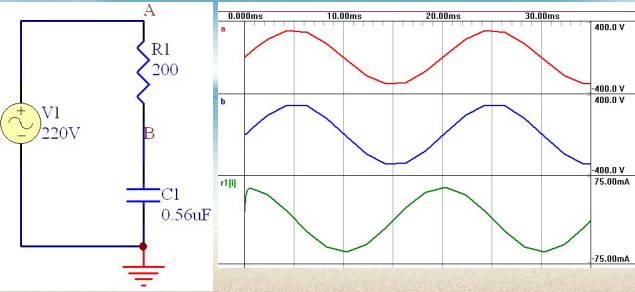 电容器实际上起到一个限制电流和动态分配电容器和负载两端电压的角色。