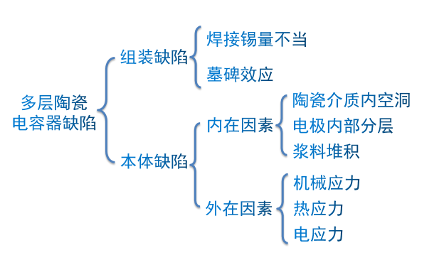 原因:多层陶瓷电容器的烧结为多层材料堆叠共烧。瓷膜与内浆在排胶和烧结过程中的收缩率不同,在烧结成瓷过程中,芯片内部产生应力,使MLCC产生再分层。