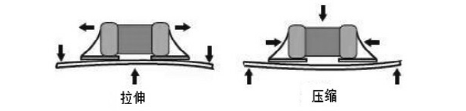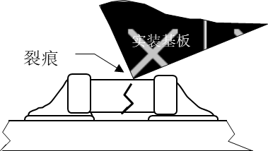 原因:多层陶瓷电容器的特点是能够承受较大的压应力,但抗弯曲能力比较差。当PCB板发生弯曲变形时,MLCC的陶瓷基体不会随板弯曲,其长边承受的应力大于短边,当应力超过MLCC的瓷体强度时,弯曲裂纹就会出现。电容在受到过强机械应力冲击时,一般会形成45度裂纹和Y型裂纹。