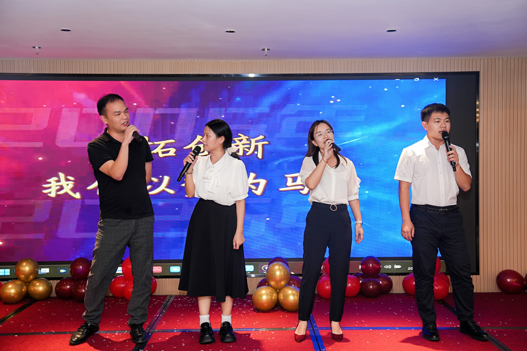 华智科全体成员精神抖擞地列队登台,统一的着装彰显着团队的凝聚力。随着前奏响起,我们齐声高唱《华智科之歌》——铿锵的旋律如春雷激荡,嘹亮的歌声似浪潮奔涌。每个人眼中都跳动着炽热的火焰,手臂随着节拍有力挥动,声浪穿透会场的每个角落,这一刻,我们不仅是同事,更是为共同理想而战的战友,用歌声编织着属于华智科人的光荣与梦想。